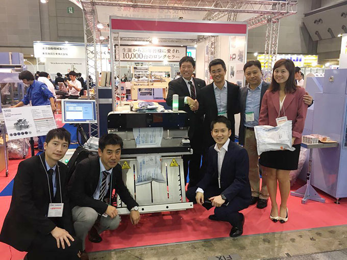 此次展出的P505S型自動發(fā)包機(jī)集成驗貨、打印、貼標(biāo) 和封口一體化解決方案 ,適用于T 恤、襯衫、連衣裙、牛仔褲等快遞袋形式包裝的服裝企業(yè)。具有智能打印、高效省工、包裝美觀、節(jié)能環(huán)保等多項技術(shù)優(yōu)點,吸引了“JAPAN PACK 2017”參觀者的積極關(guān)注。