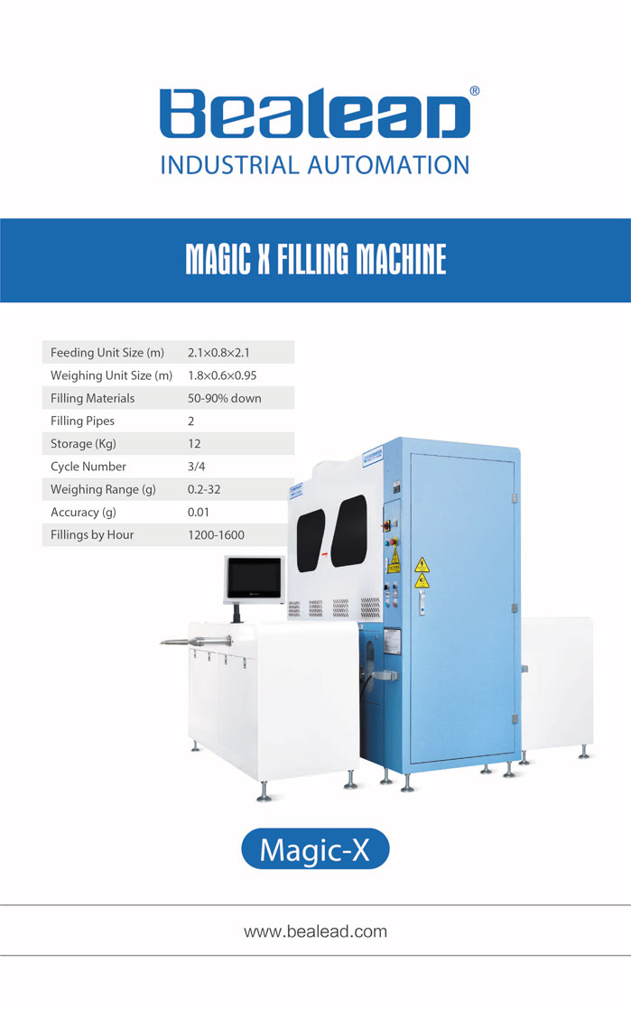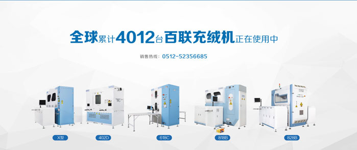 百聯(lián)展品:X型模塊化充絨機、402D全自動絨棉一體機、618A全自動四口流量法充絨機