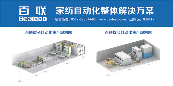 百聯(lián)展品:X型模塊化自動充絨機、402D全自動絨棉一體機、1208型全自動充棉枕芯機