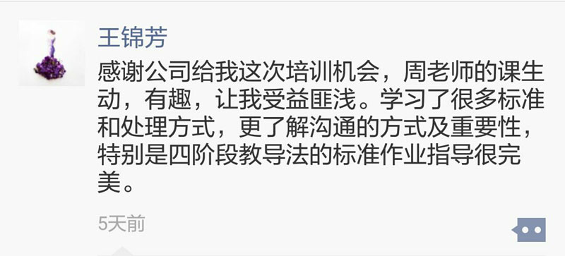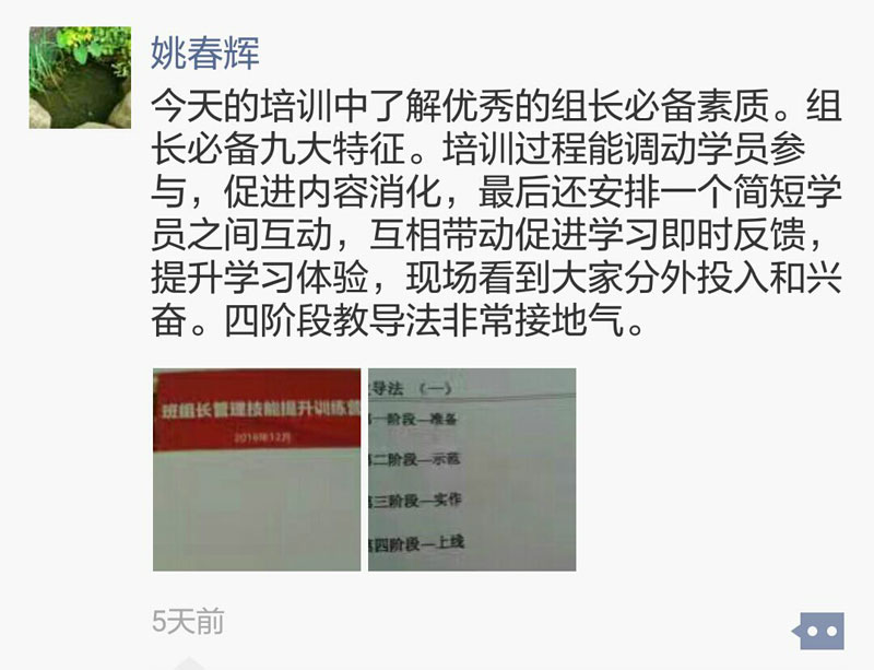 培訓期間,一線班組長主要強化技能訓練,在角色認知和團隊建設方面有了新的認識,比如該怎樣成為中堅力量。他們也通過“接地氣”的案例,了解到“四階段教導法”,還提高了問題分析與解決的技巧。