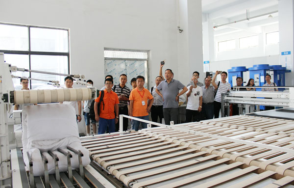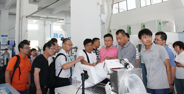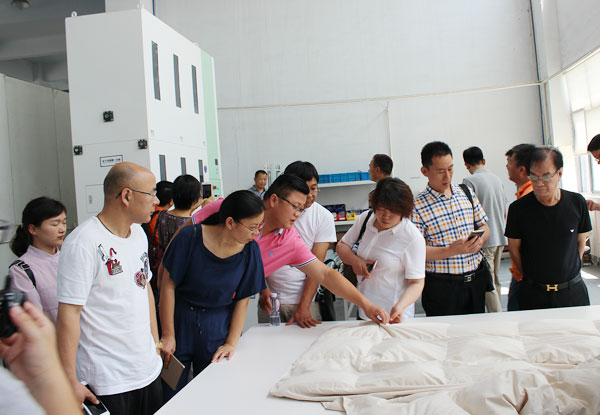 隨后,專家和企業(yè)代表們走進(jìn)百聯(lián)生產(chǎn)車間,重點(diǎn)觀看了1202B羽絨被充絨機(jī)、全自動(dòng)折疊機(jī)、全自動(dòng)棉枕芯機(jī)以及101型商超羽絨被充絨機(jī)等產(chǎn)品的實(shí)物操作過程,對產(chǎn)品功能、性能有了直觀的了解,對家紡自動(dòng)化整體解決方案給予了高度的評(píng)價(jià),并結(jié)合家紡生產(chǎn)中的具體問題進(jìn)行了咨詢,也提出了需求和建議。