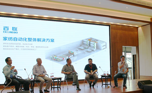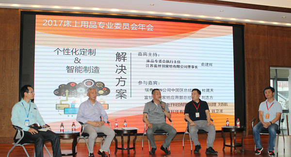 就在床品行業(yè)專家和企業(yè)代表訪問百聯(lián)總部的前一天, “2017床上用品專業(yè)委員會(huì)年會(huì)”在吳江召開。來自床品行業(yè)及關(guān)聯(lián)行業(yè)的200多位代表齊聚一堂,共同探討和總結(jié)了床品行業(yè)的現(xiàn)狀,從做強(qiáng)產(chǎn)品、技術(shù)革新、渠道升級(jí)等方面共商未來發(fā)展之路。公司董事長錢衛(wèi)波作為年會(huì)主題論壇的嘉賓,與在場的與會(huì)代表共同探討了“個(gè)性化定制及智能制造解決方案”在家紡生產(chǎn)升級(jí)中的作用,對百聯(lián)家紡自動(dòng)化整體解決方案做了分享、解讀,臺(tái)下與會(huì)者反應(yīng)熱烈、積極互動(dòng),取得良好效果。