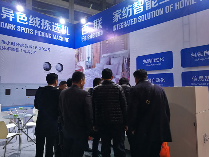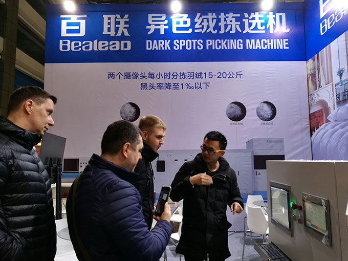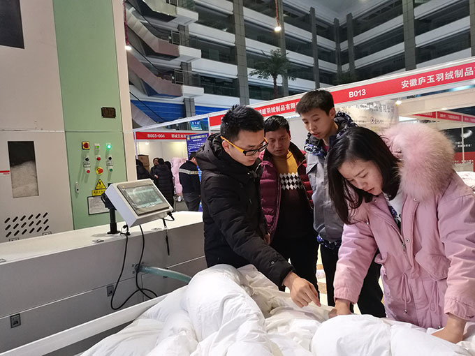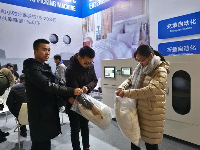 本屆羽博會期間,百聯(lián)側重對異色絨揀選機、1202羽絨被充絨機等產品的性能優(yōu)點進行現(xiàn)場演示,專業(yè)觀眾可自帶樣品試機,現(xiàn)場“檢驗”效果。