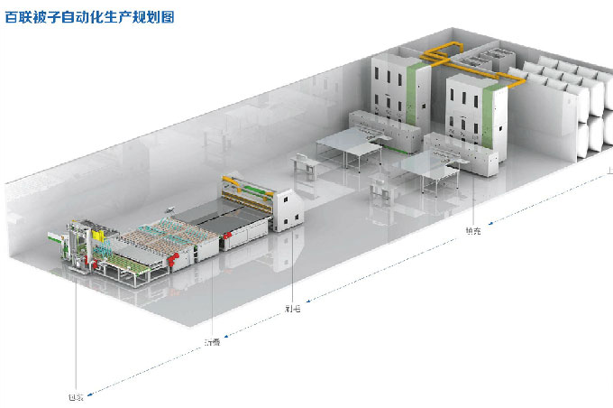 百聯(lián)的家紡自動(dòng)化解決方案,一方面在用工、生產(chǎn)效率、工作環(huán)境等方面極大地改善了用戶的生產(chǎn),另一方面又以精確均勻、蓬松美觀的纖維填充提升了羽絨被、棉被、枕芯等家紡產(chǎn)品的生產(chǎn)品質(zhì),滿足了消費(fèi)市場(chǎng)日益增長(zhǎng)的高品質(zhì)家紡產(chǎn)品需求。