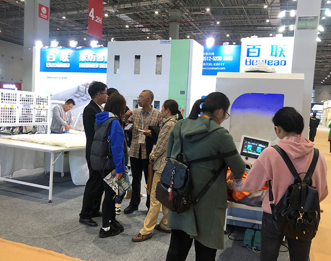 緊跟行業(yè)發(fā)展趨勢,百聯(lián)在本屆家紡展期間重點展示了 “家紡系列定制產(chǎn)品”,以豐富的、可定制化的家紡自動化解決方案滿足家紡企業(yè)個性化、多樣化的生產(chǎn)需求。該“定制化”的家紡系列產(chǎn)品,以被子類、枕芯類、配套類三大產(chǎn)品系列中的1202B羽絨被充絨機、102B商超羽絨被充絨機、F2215全自動折疊機、TF-1206羽絨枕芯機、TF-1208全自動棉枕芯機以及枕芯壓縮包裝機、全自動上料機、全自動刷毛機等基礎(chǔ),根據(jù)用戶的工藝要求,進行個性化的開發(fā)與設(shè)計。