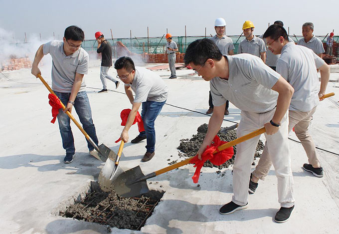 6月6日,常熟虞山高新技術(shù)產(chǎn)業(yè)開發(fā)區(qū)內(nèi),隨著我們公司高層揮鏟填入最后一塊混凝土,百聯(lián)“新建智能裝備生產(chǎn)項目”基地建筑主體正式“合龍門”,順利實現(xiàn)結(jié)構(gòu)封頂!