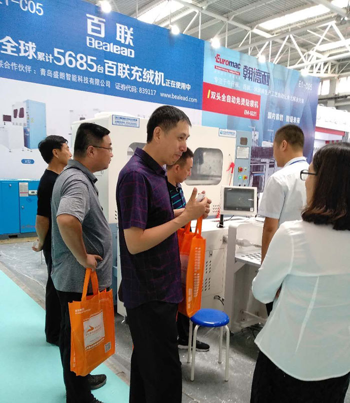 本屆青島展會(huì)以“貿(mào)易、綠色、智能化、解決方案”為主題。百聯(lián)亮相E2館的C05展位,重點(diǎn)展示了全新推出的2601X型模塊化自動(dòng)充絨機(jī)、102B迷你機(jī)型以及經(jīng)典的402D雙口絨棉一體機(jī),繼續(xù)鞏固自身在纖維自動(dòng)填充設(shè)備領(lǐng)域的地位。