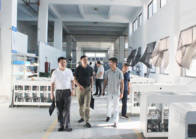 調研期間,周建中等專家一行聽取了公司董事長錢衛(wèi)波的相關匯報,不僅深入車間一線,就以自動化充絨機為代表的自動化、智能化裝備的研發(fā)和生產進行實地調查;還在座談交流中,就IEBOX等面向服裝數(shù)字化、智能化管理的軟件解決方案和RFID技術的發(fā)展及其應用的情況進行了詳細了解。