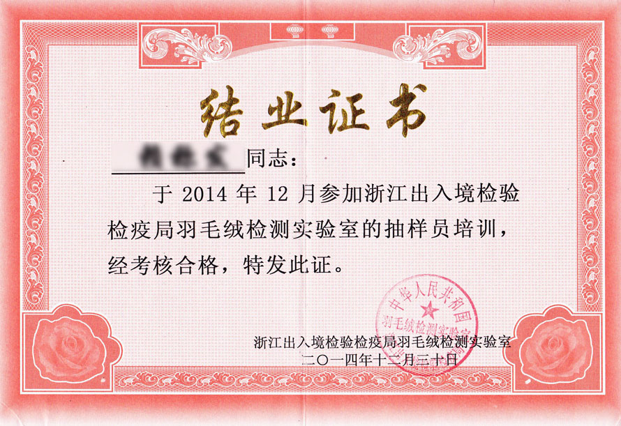 我們有專業(yè)抽樣師在羽絨包裝的上中下位置分別取樣,對于捆包和積壓包有專門的抽樣動作防止絨朵損傷。專業(yè)化抽樣合格后,將這些樣品充分混勻再抽樣,送到權(quán)威的檢測機(jī)構(gòu)檢驗。